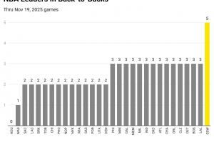 > 熬老头?赛季至今各队平均2.5个背靠背 勇士却有5个!!